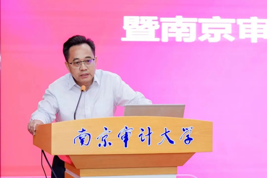 随后进入金融校友联谊会环节。一段3分钟的“金融校友时光记忆”暖场视频,通过泛黄的校园老照片、历届校友活动画面,勾起了在场校友对青春岁月的回忆。南京审计大学金融学院党委书记王家华教授介绍了联谊会的筹备成果,他强调联谊会将突出“活动性”而非“机构性”,旨在为校友搭建灵活的交流平台。