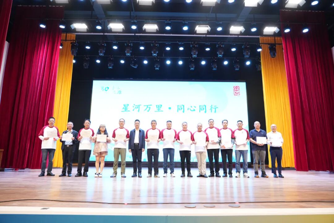 此次返校班级自发捐赠,积极表达对母校感恩之心。现场,李乾文副校长为1995届校友代表颁发捐赠证书,并赠送校友卡。此外还进行了1995届校友与1996届校友“返校纪念旗”和“纪念盘”交接仪式。在校生们为师兄姐们带来了情景诗朗诵《审计之光·辉映星河》。