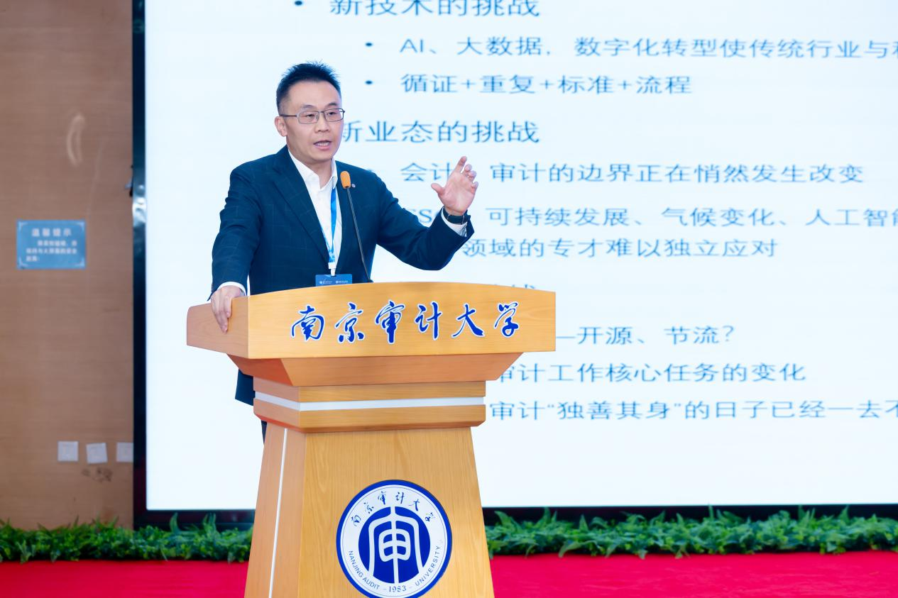 贵州财经大学党委常委、副校长杜剑以“地方高校审计教育高质量发展的思考”为主题,以贵州财经大学为例介绍了学校会计学院在学科建设、人才培养、党建引领等方面的显著成果,指出了学校仍面临学科建设短板、人才引育困难和技术冲击等方面的挑战,并围绕审计教育高质量发展提出了针对性的思考与建议。