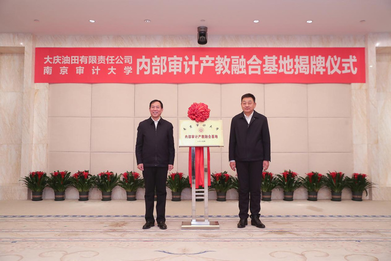 双方代表共同为南京审计大学在大庆油田设立的“内部审计产教融合基地”揭牌。