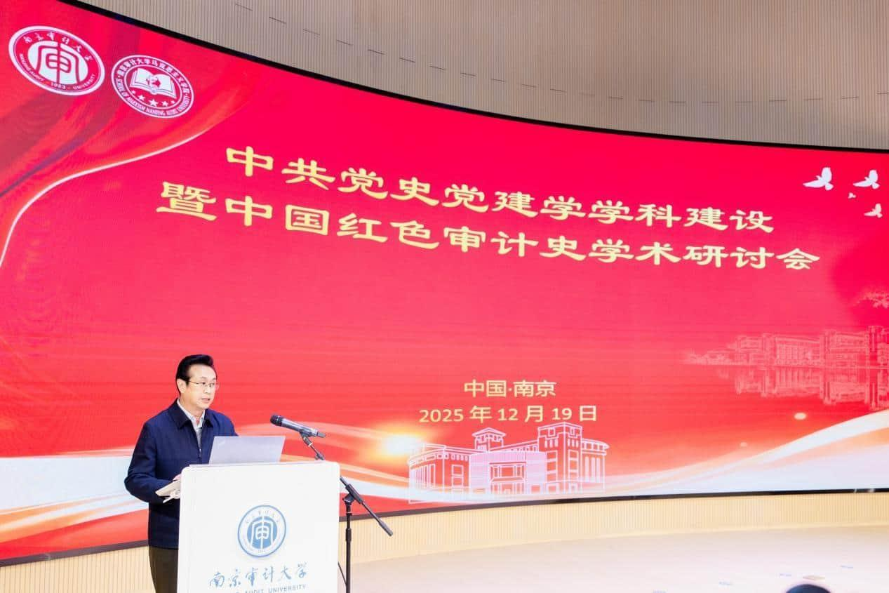 12月19日上午,由南京审计大学主办,马克思主义学院与法学院(纪检监察学院)、国家安全学院(公共管理学院)共同承办的中共党史党建学学科建设暨中国红色审计史学术研讨会在我校召开。研讨会旨在深入学习贯彻党的二十届四中全会精神,全面落实习近平总书记关于党的历史、党的建设及审计工作重要论述,深化中共党史党建学学科体系研究,挖掘中国红色审计史的时代价值。