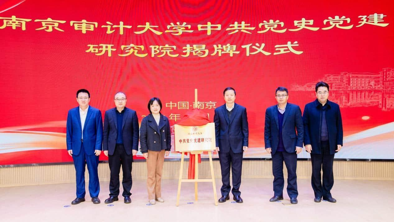 校党委副书记陈中建与中国审计博物馆办公室主任周卉为南京审计大学中共党史党建研究院成立揭牌。