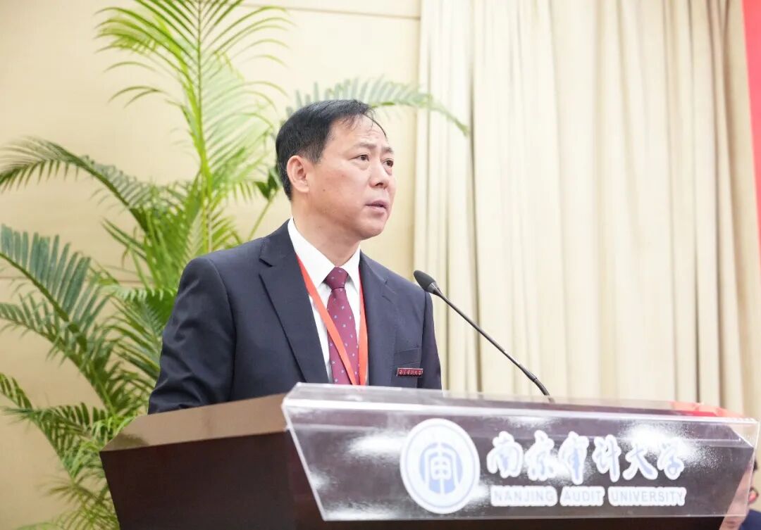 校党委副书记陈中建代表学校党委致辞。他指出,2025年是学校“十四五”规划收官之年,学校各项事业取得阶段性标志性成果,成绩凝聚着全体教职工的心血与汗水。2026年是学习贯彻党的二十届四中全会精神重要之年、学校“十五五”规划开局之年,也是深化综合改革、推动高质量内涵式发展关键之年。为此,他对与会代表提出三点希望:一是坚守政治初心,在把舵定向、凝聚共识上彰显新担当。二是锚定发展目标,在攻坚克难、奋勇争先上展现新作为。三是践行宗旨意识,在服务师生、办实事解难题上实现新提升。他希望,全体南审人要同心同德、真抓实干,奋力书写 “十五五” 开局之年崭新答卷,为服务国家审计事业和江苏现代化建设贡献南审力量。
