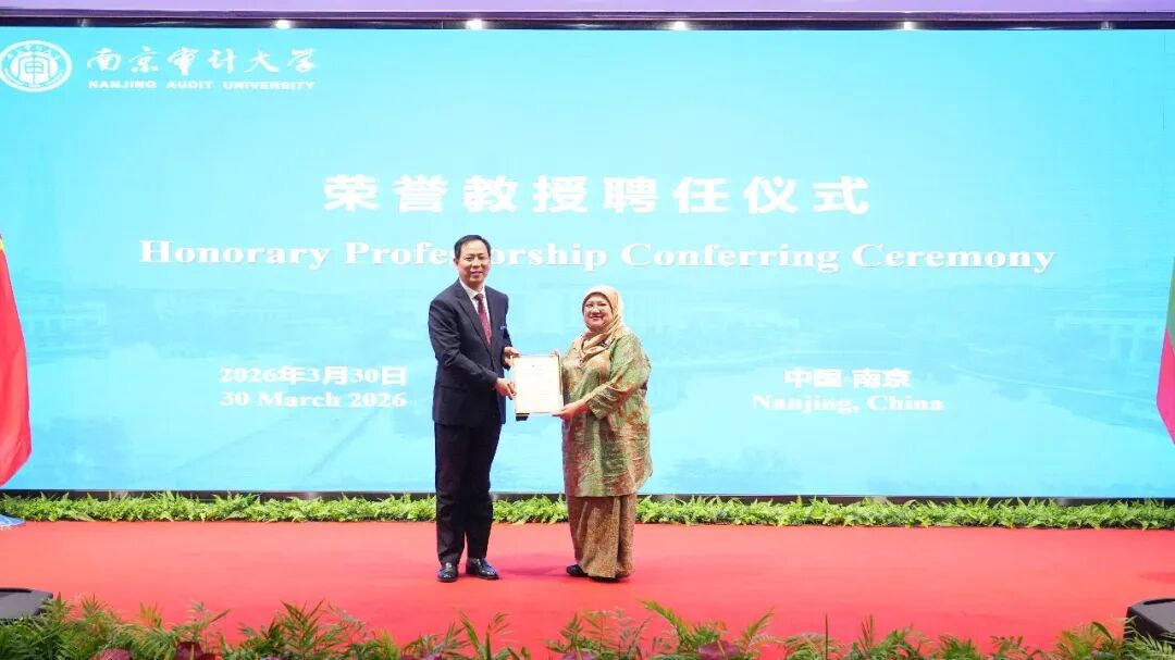 3月30日,马来西亚审计署审计长旺·苏拉雅女士、土耳其审计法院院长梅廷·耶内尔先生、马尔代夫审计署审计长侯赛因·尼亚兹先生受聘南京审计大学荣誉教授。