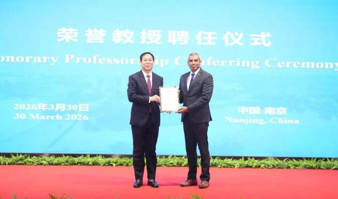 图为马尔代夫审计署审计长侯赛因・尼亚兹受聘我校荣誉教授